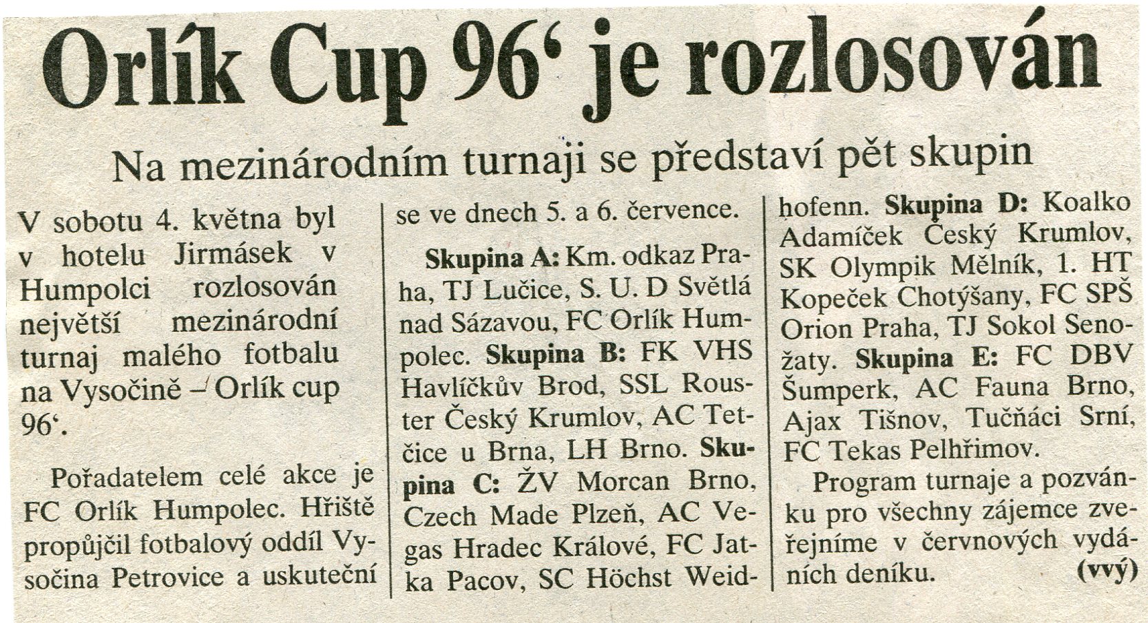 Svátek klubu tj. Orlík Cup